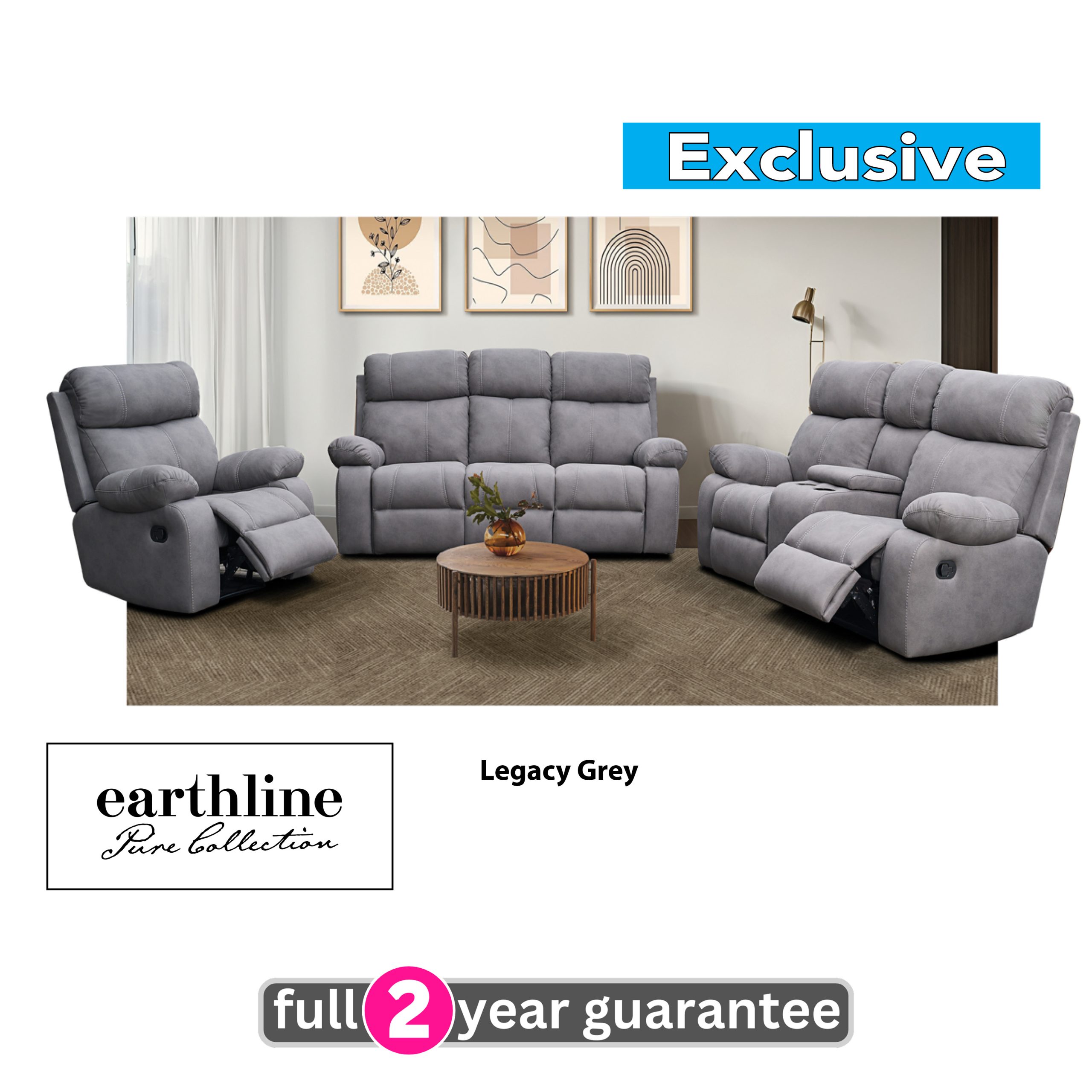 The Carter by Earthline is a high backed suite and boasts 3 action recliners for superior extra comfort. The single seat reclines and the 2 seater has 2 recliners and a cinema console. The suite is upholstered in a hardwearing and easy clean polyester microfibre fabic and is available in 2 colours – grey, or brown..