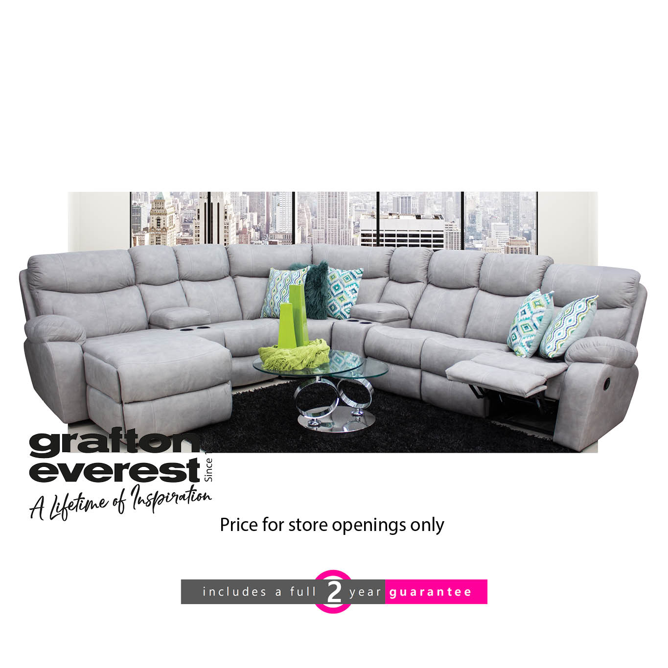 The NEVADA 7 pce fabric lounge suite has enough seating for the whole family. Features a recliner and a daybed for complete relaxation and 2 x cinema consoles with cup holders. An ideal suite for relaxing and watching your favourite Netflix movie. Daybed can be on the left or the right. Available in Addo Grey, Taupe, Asphalt and Palance Steel.
