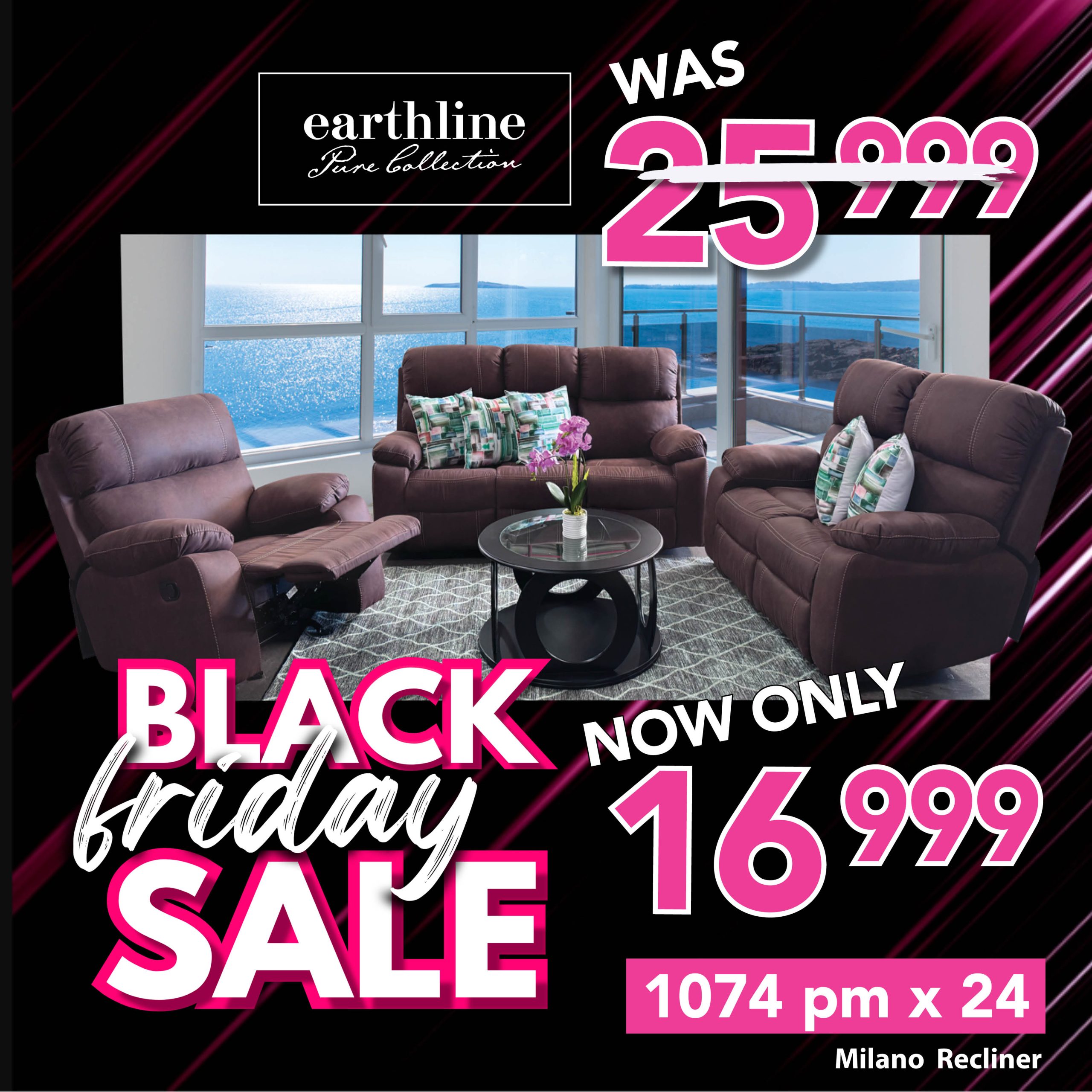 Exclusive to Furniturevibe, this contemporary suite features a unique cozy coil spring system for superior comfort and relaxation. Single chair has a recliner. Upholstered in an exclusive embossed microfibre fabric. Only 10 available.