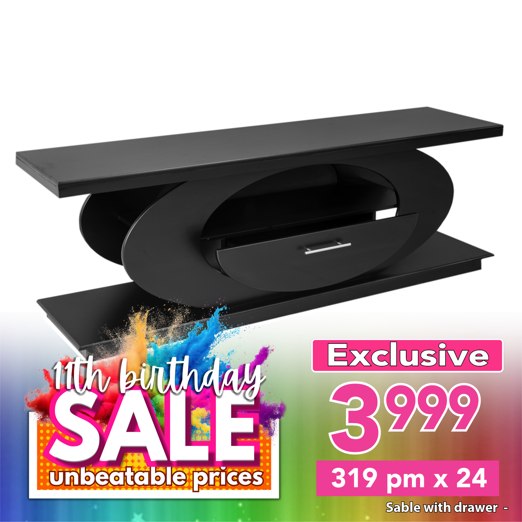 A uniquely crafted plasma stand, both bold and enticing. Both beautiful and functional, this plasma stand also includes a draw to keep all the remotes safe.