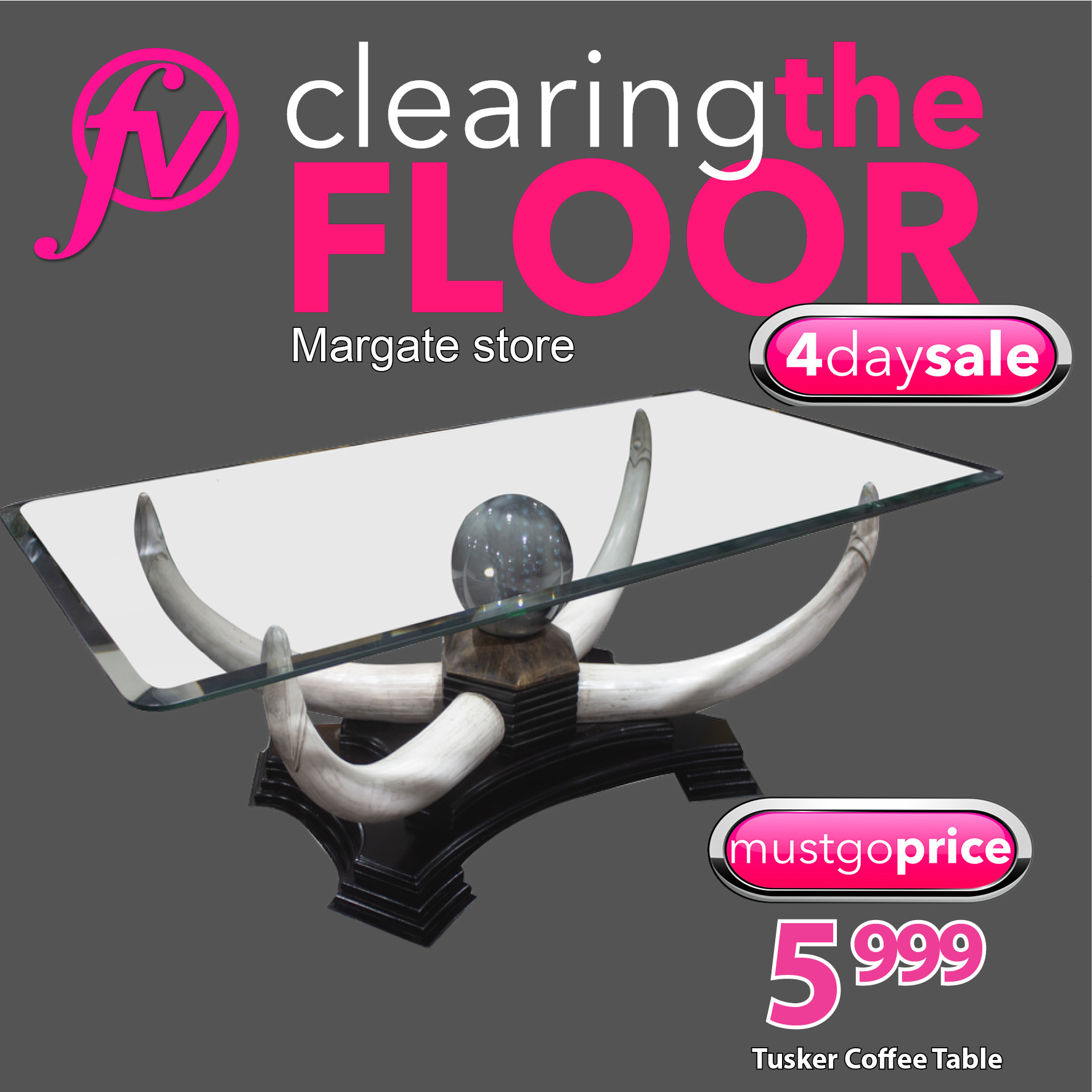 Exclusive to Furniturevibe. Bring Africa into your lounge with the Tusker coffee table. The solid strengthened glass top floats on top of faux elephant tusks.