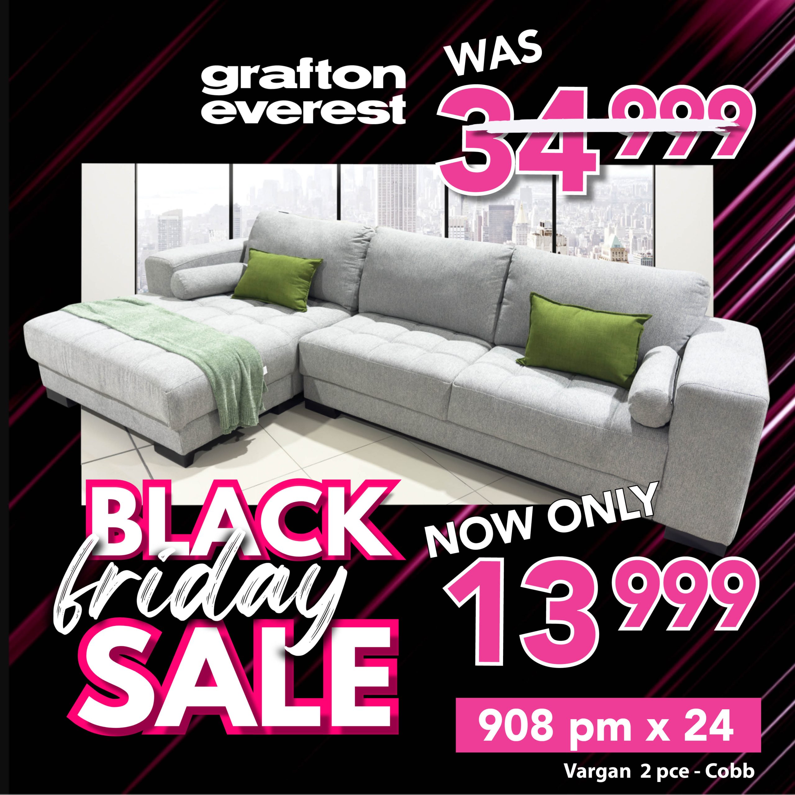 Exclusive to Furniturevibe, the VARGAN manufactured by Grafton Everest, is a large 2pce couch with chaise and is covered in a durable fabric. Pictured as a left hand facing LHF, also available as a right hand facing RHF.